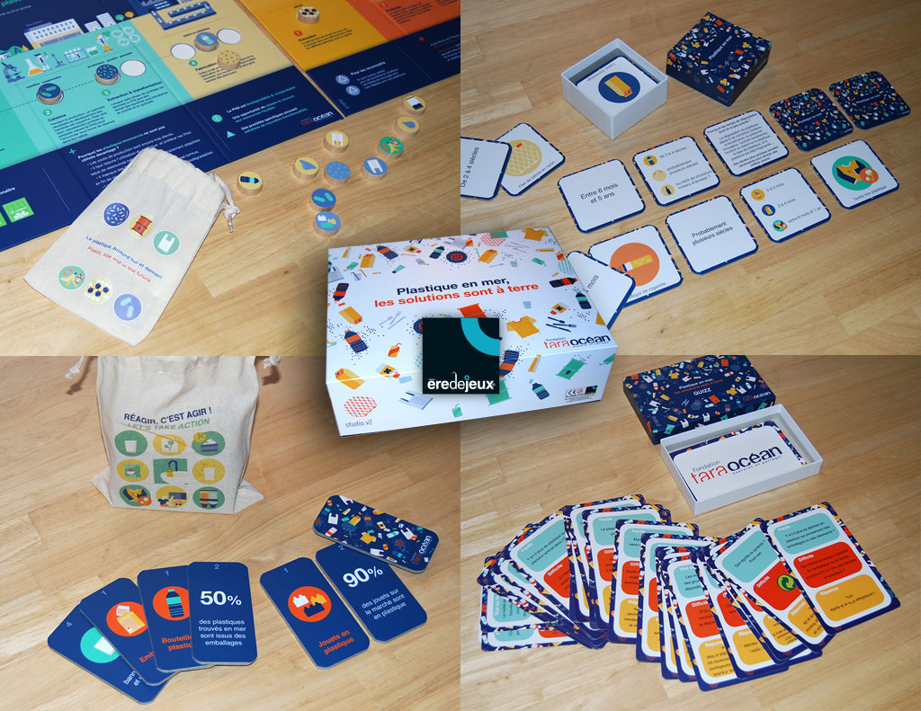 Un kit ludique réalisé pour la fondation Tara Océan permet de communiquer autour du globe sur la nécessité de protéger nos océans. Les millions de tonnes de plastique à la dérive sont une catastrophe pour la planète. Informer le temps d’un jeu, quelle meilleure solution ?