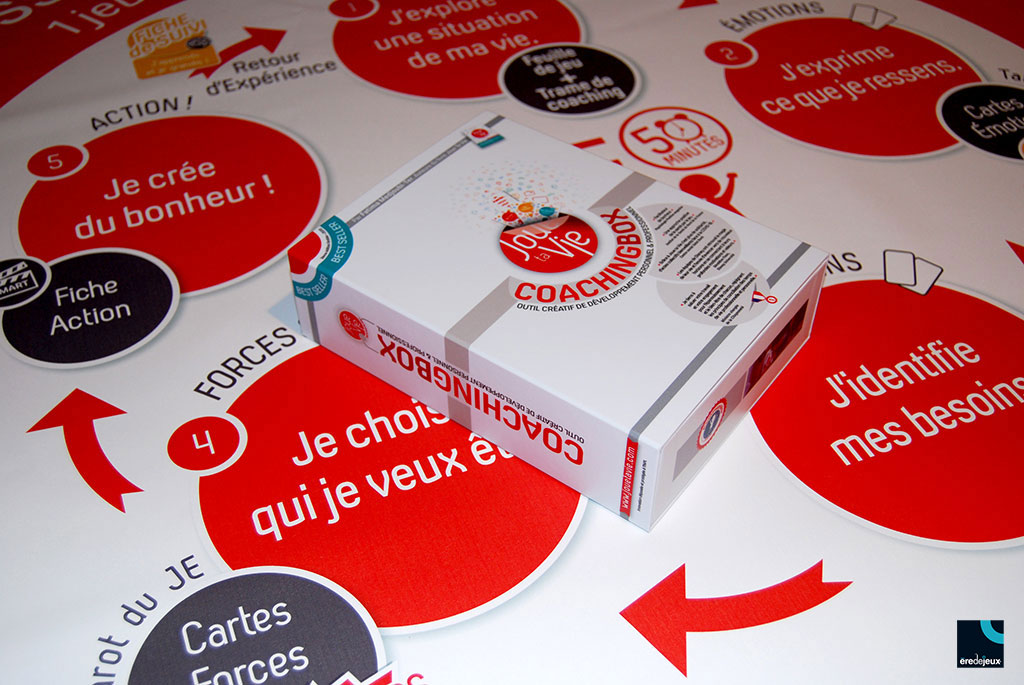 Un design et une fabrication signés èredejeux avec une boîte à fourreau contenant un ensemble de supports pour se coacher et se faire coacher.